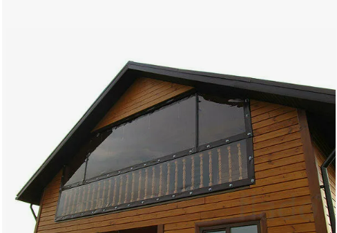 Конструкция с плавным переходом от прямой стены к двускатной крыше, без свеса кровли. Используется для складов, производства, спортивных сооружений. Постройка выдерживает высокие нагрузки, подходит для занятий активными видами спорта: футбол, хоккей, большой теннис, баскетбол, т.д.